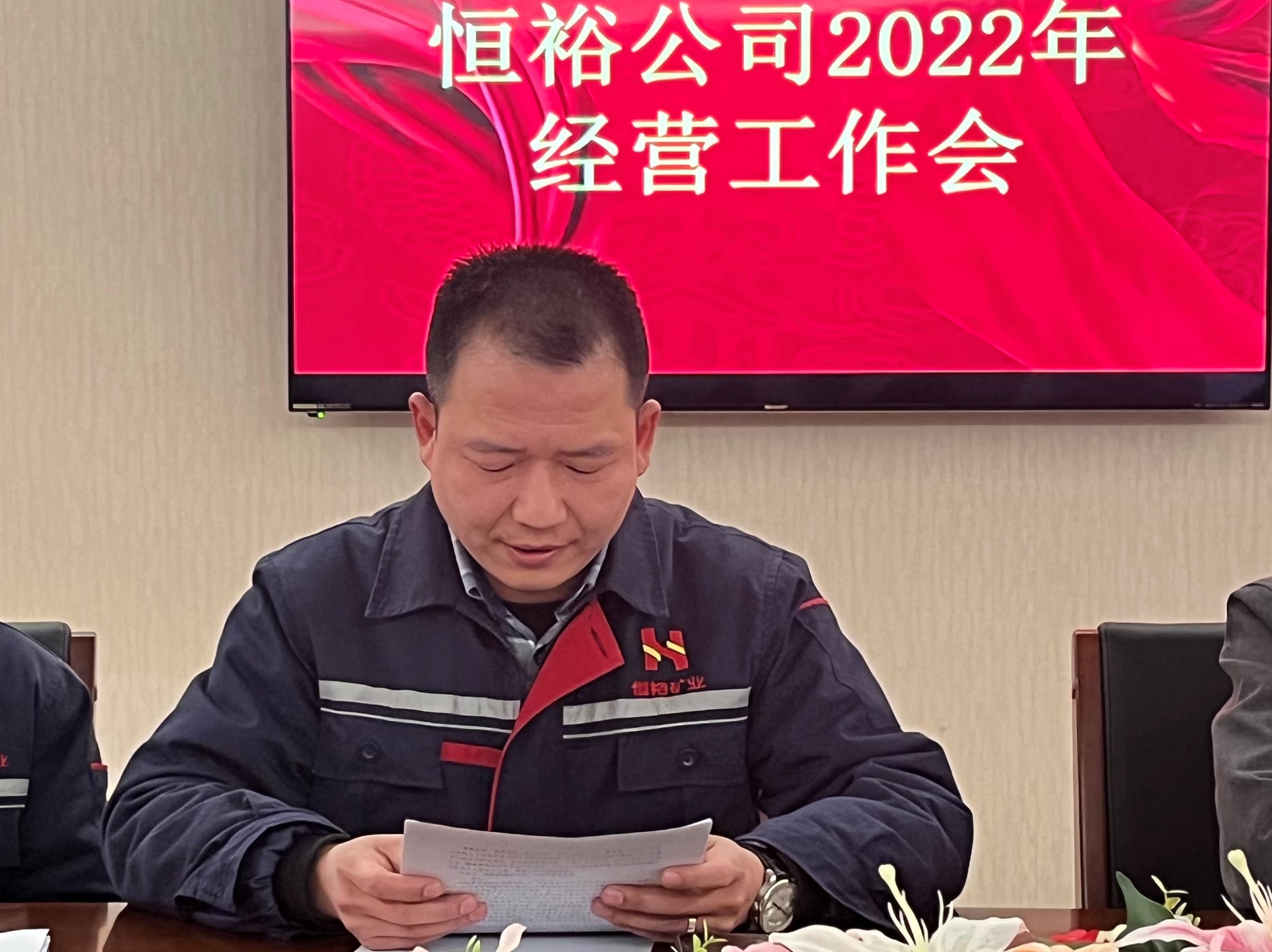 2月3日,欒川恒裕礦業(yè)有限公司召開年經(jīng)營工作會議。恒裕公司全體中高層管理人員、2022年受表彰人員、科長及車間主任代表參加會議,集團公司冶金礦產(chǎn)部潘劍云總經(jīng)理列席會議。會議全面總結(jié)2022年恒裕公司建設(shè)經(jīng)營情況,表彰過去一年優(yōu)秀團隊、優(yōu)秀管理者及各崗位表現(xiàn)突出的優(yōu)秀員工,對2023年工作思路和重點任務(wù)安排部署,動員全體員工堅定信心、砥礪前行,共創(chuàng)恒裕美好新篇章。